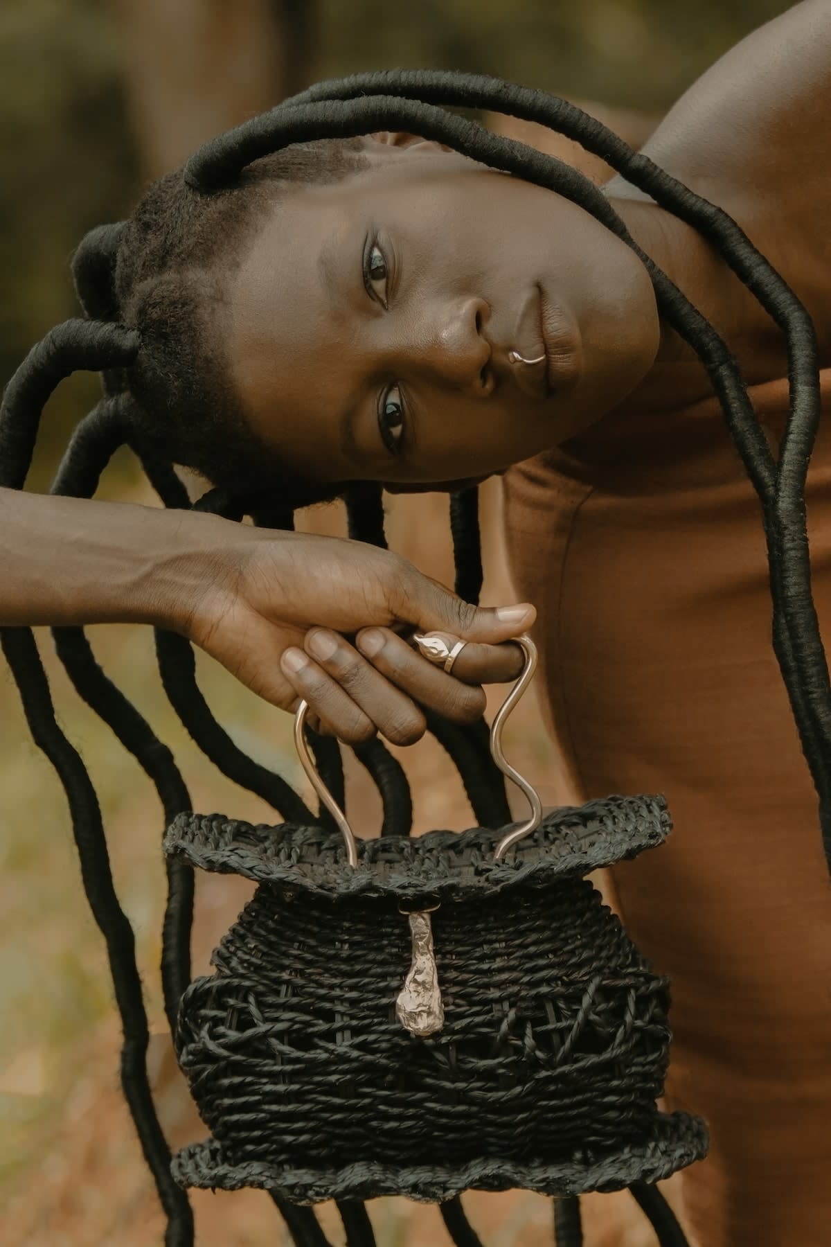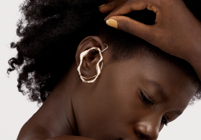 Having grown up in Côte d’Ivoire in a family where pride in cultures and heritage was encouraged, Kpolo fell in love with African jewelry at a young age. With Ohiri, she aims to highlight the traditional knowledge and heritage of African art through jewelry, working with local artisans to craft pieces that honor the aesthetics & symbolism of body ornamentation in indigenous cultures. From its signature lip jewelry and shoulder necklaces to its futuristic ear cuffs and unconventionally sculptural rings, the brand’s aesthetic is organic and bold, with its unusual silhouettes creating an elegantly fluid appearance. Ohiri’s convention-defying statement jewelry is crafted from gold-plated recycled brass or bronze, recycled silver, gold-plated recycled silver, and gold, and the striking pieces impart a regal magic that hints at Côte d’Ivoire’s rich history and culture. Its bags, meanwhile are produced using natural materials, including raffia, and their Stool Black Bag was recently spotted being worn by supermodel Bella Hadid.