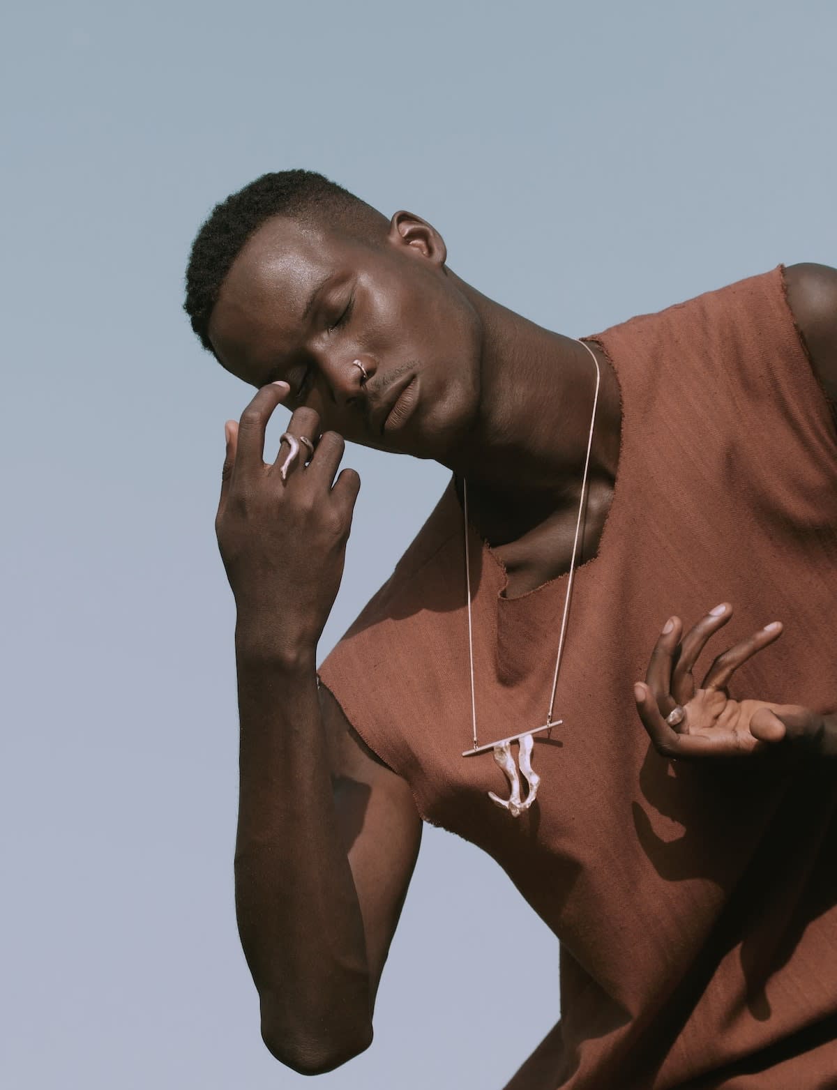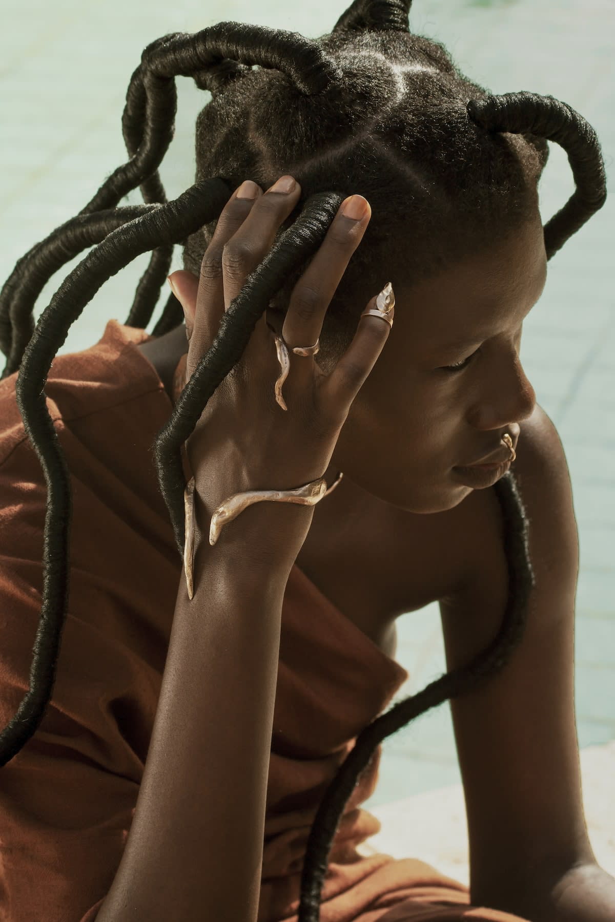 An Ivorian accessories brand founded by Akébéhi Kpolo, Ohiri’s conceptual jewelry pieces and bags serves as both sartorial adornments and artistic statements. Their approach is to understand the symbolism of the jewel in certain ancient cultures and to reinterpret it through different mediums, making free, abstract pieces that are wholly unique and thoughtfully sustainable.