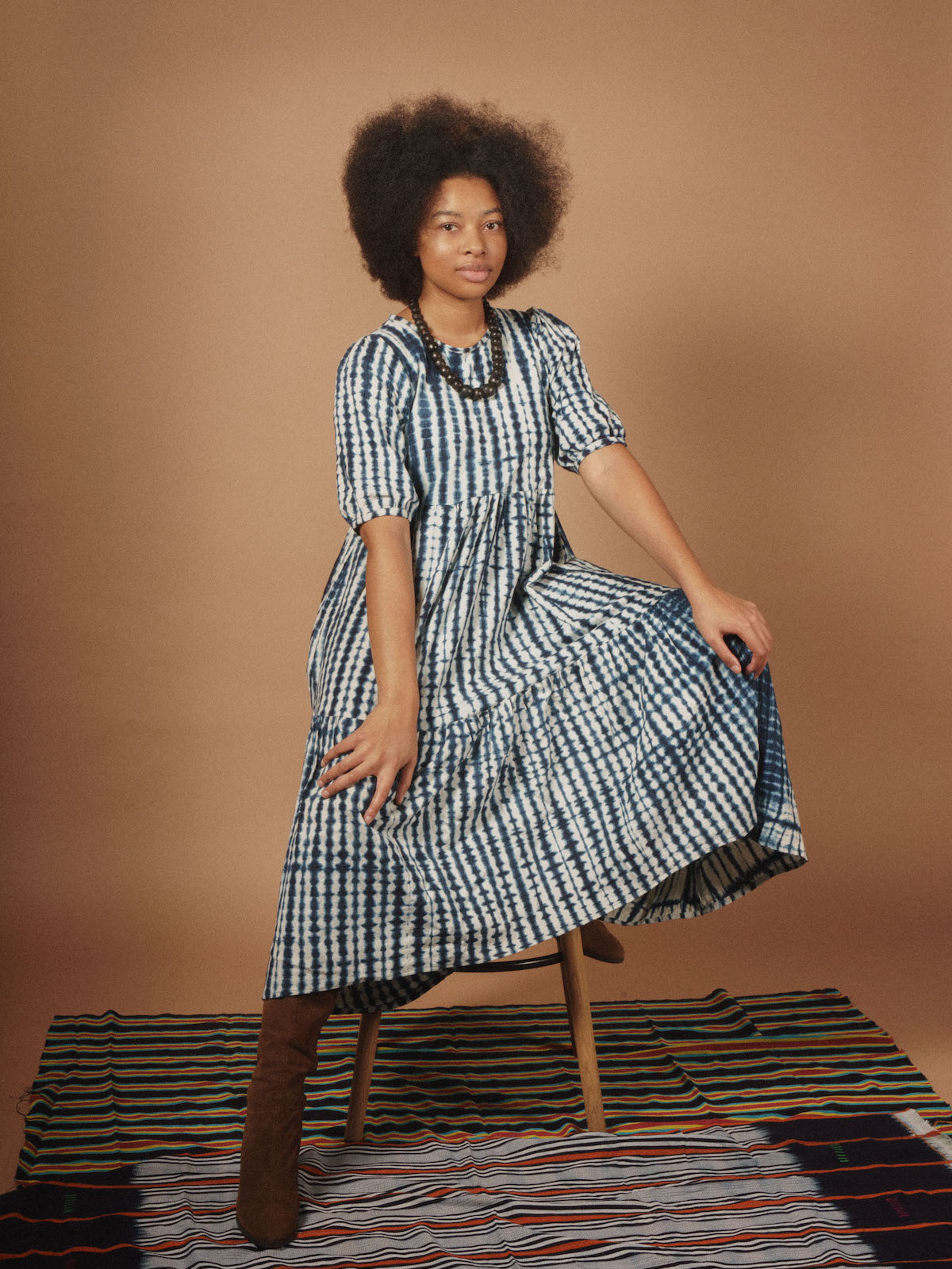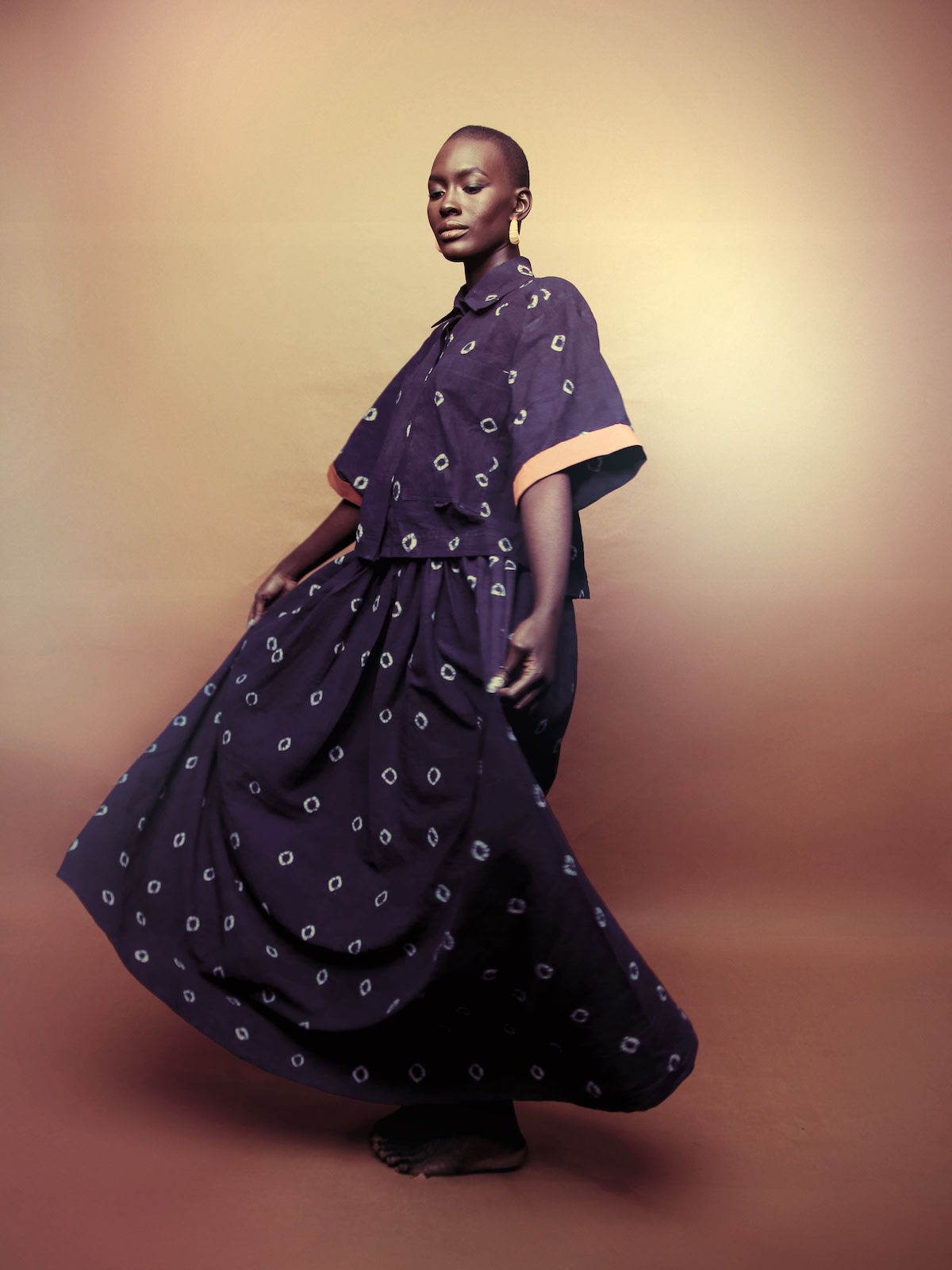 Founded by journalist and director Koudiedji Sylla, Sarakulé is a fashion brand built around hand-dyed cotton textiles. Born in Paris but with roots in Mali, Sylla shifted her focus to design with the establishment of her brand, viewing the venture as simply another medium of storytelling. Still, the objective remained the same: to popularize, enhance, demystify, and revive stories that matter, as well as to celebrate the indigenous craftsmanship of Mali. According to Sylla, it all started with an indigo cotton loincloth, something that she recalls her grandmother and namesake giving to her in the courtyard of her family home in the Malian city of Kayes. With her grandmother passed on, Sylla considers the fabric a symbol of familial transmission, generational know-how, and, above all, a wealth of heritage that exists and endures.