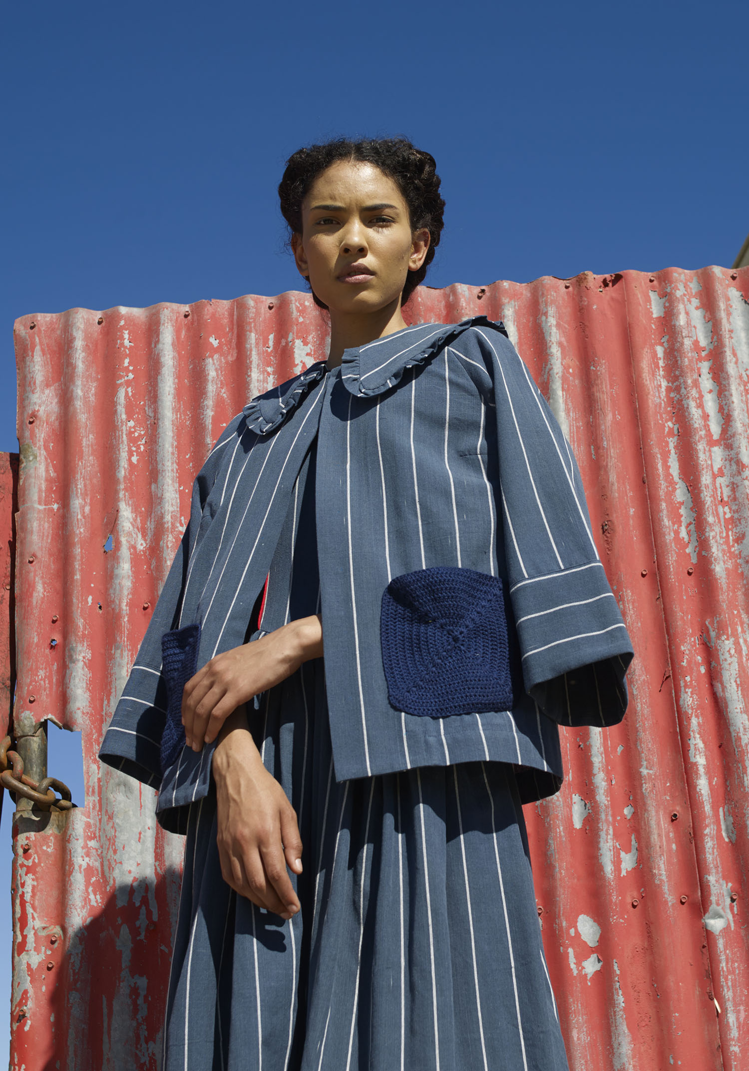 At the heart of the designer’s burgeoning brand lies a sense of community; she employs a group of artisans in Burkina Faso and a few small rural communities in South Africa, and she works with the United Nations Ethical Fashion Initiative to connect with various African woman artisans who practice a range of traditional techniques. She also established a partnership with Cape Town-based NGO Embrace Dignity, which encourages women to learn new skills such as hand-embroidery and crochet, and guides them to long-term, financially stable careers. Speaking to Vogue in 2020, the designer shared that her community-based approach “is about creating a space for women to gather, make, and heal.”